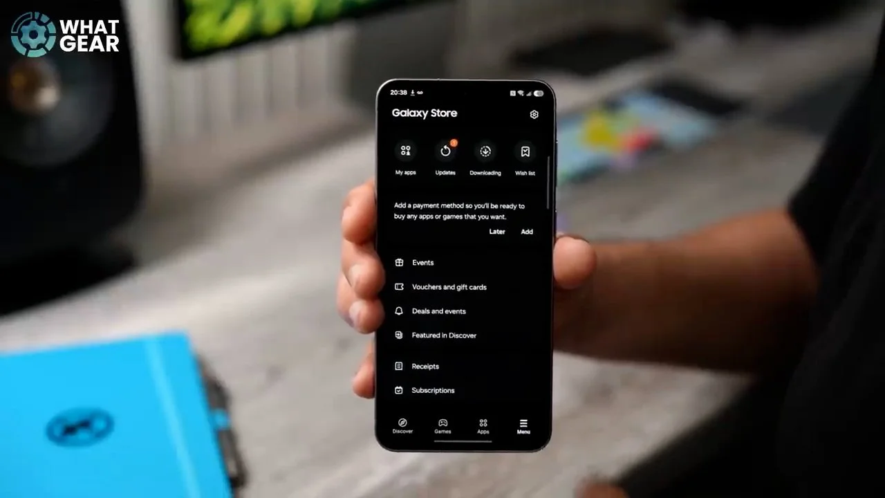 Now, if your phone is literally box fresh, it's going to look quite similar to this. And something you absolutely need to do straight away is go to your Galaxy Store, because this is where all of your Galaxy apps get updated. If you don't activate the store and update it out of the box, it'll be a while before you get the latest updates for all of your apps, so make sure you go through the original update process for the Galaxy Store. Once you've done that, go to the menu and at the top here if you see any updates, make sure you do all of those on day one. This just guarantees that you get all of the latest Samsung Galaxy features.