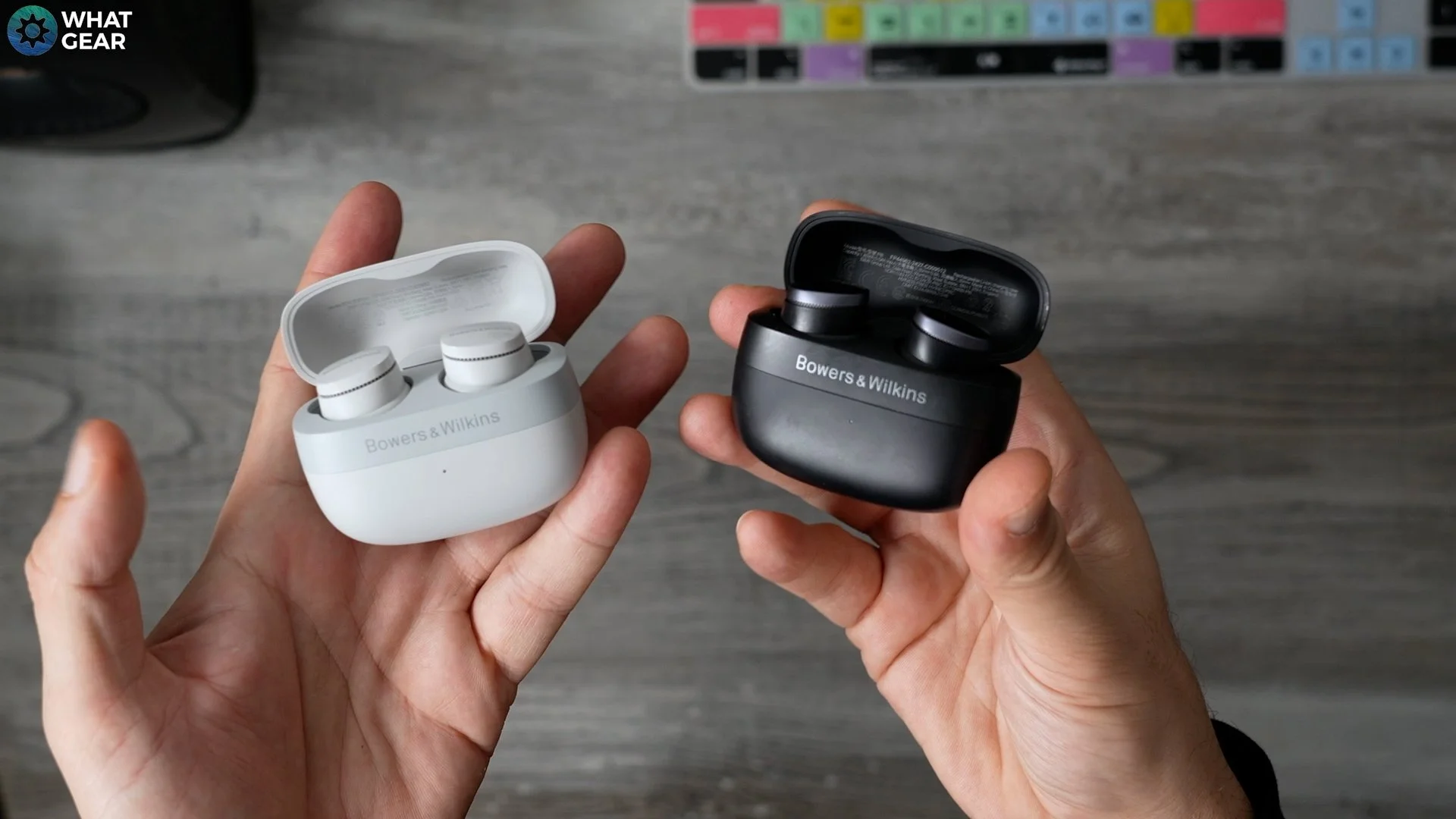 So, let's start with the design. If the look is all you care about. Then you could just save the 130 pounds. Because, on the face of things, these two Bowers and Wilkins earbuds are almost identical, and the charging cases are exactly the same size and weight.
