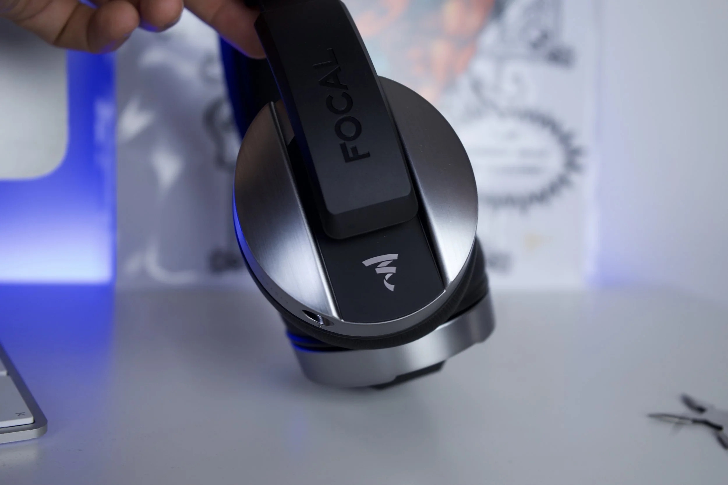 The Focal listens are largely made of durable, flexible plastics with brushed metal ear cups. Across the headband is fair bit of Focal branding and on the earpieces and a really nice metallic focal logo, which looks good to me. Also it has small print across the earpieces for those of you who like the finer details.