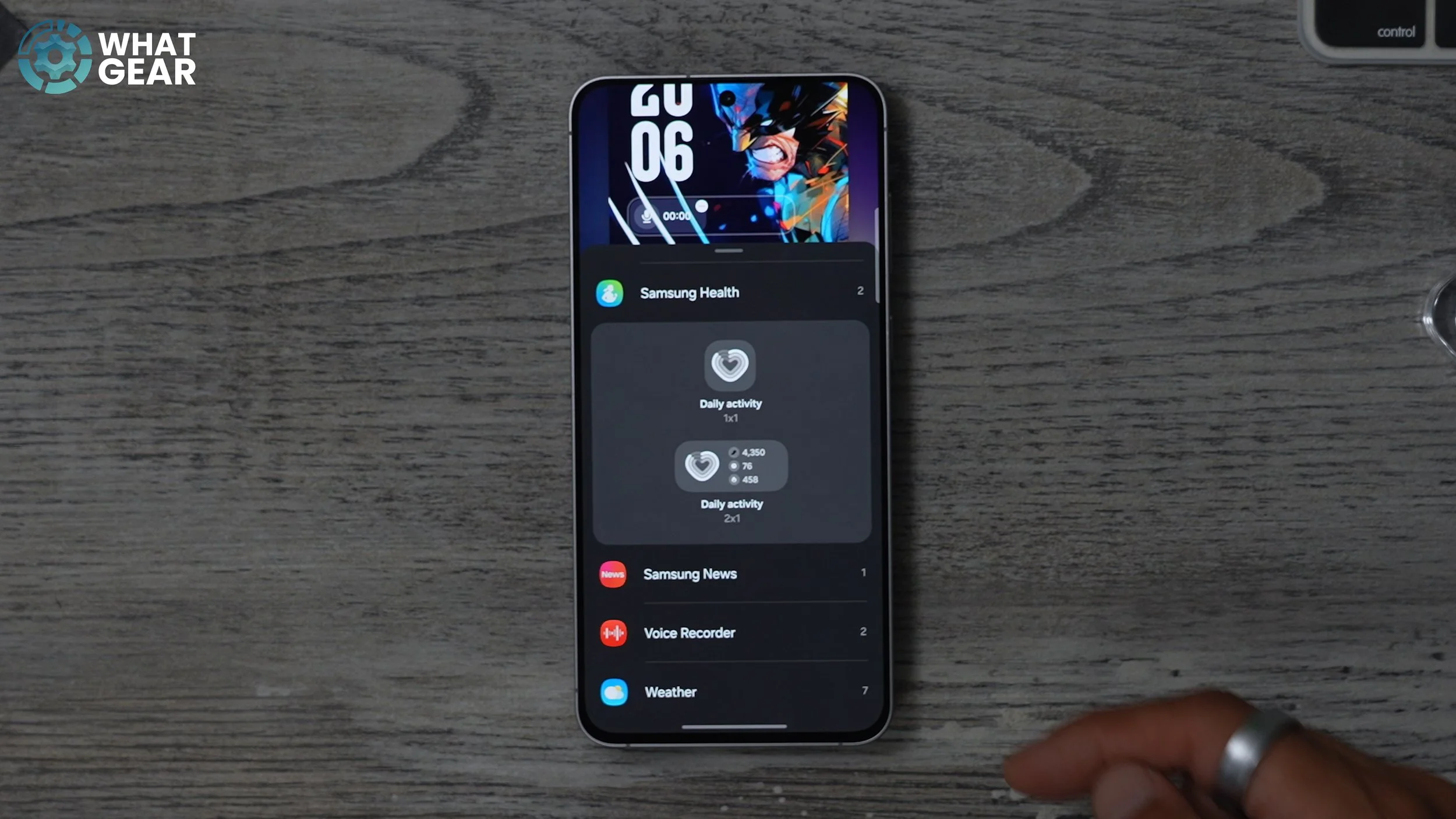 There is one that's really, really useful. So, just below the clock, you should see this little add widget section. If you tap on this, you can have a look at the options. The one that I highly recommend is the voice recorder. Another one that I'm going to add is the Samsung Health, which is kind of greyed out right now because I haven't launched Samsung Health for the first time. But once this is set up, you can see your steps and your activity and your calories burned and all that stuff right there on the lock screen. So that's why that's a good one, but it's entirely up to you. Choose the widgets that make the most sense to you.