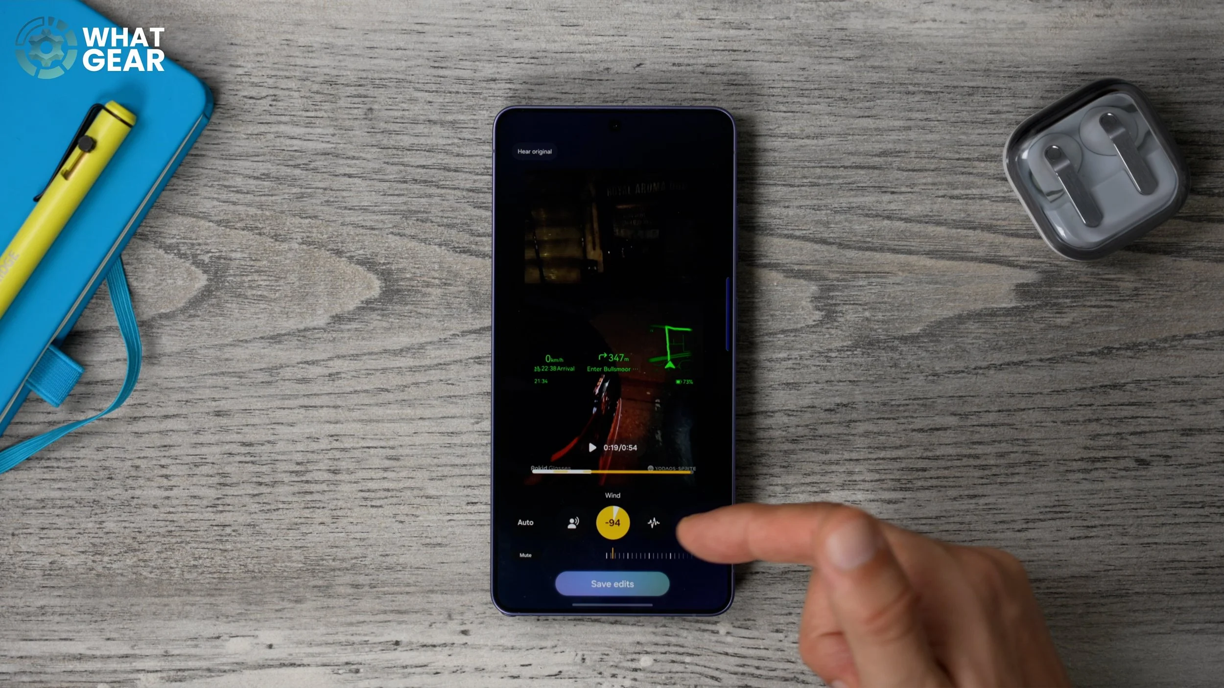 In one of the previous videos, I showed you how to eliminate background noise when watching content. But here’s how to remove noise from your own videos. For example, here’s a noisy clip. If you open that video in your Gallery, hit the little sparkle icon at the bottom, and the phone will analyse the audio. Then you can reduce specific noise types like wind, road noise, etc. You can dial them all the way down or just hit Auto. Once you’re happy, hit save edits — this creates a new clean version while keeping the original.