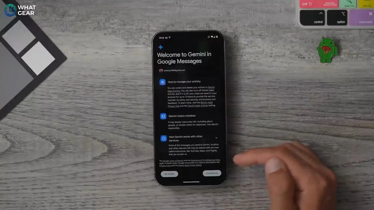 Swipe up and hit the mic, and this actually uses Google Assistant combined with Gemini Nano.