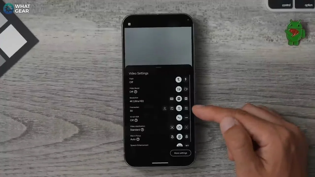 Now, let's toggle back to the camera & go to settings. And then go to more settings. Here, there are three more settings that you might like. The guided frame is a great tool, as its sole purpose is to help you level up your camera and compose better shots.