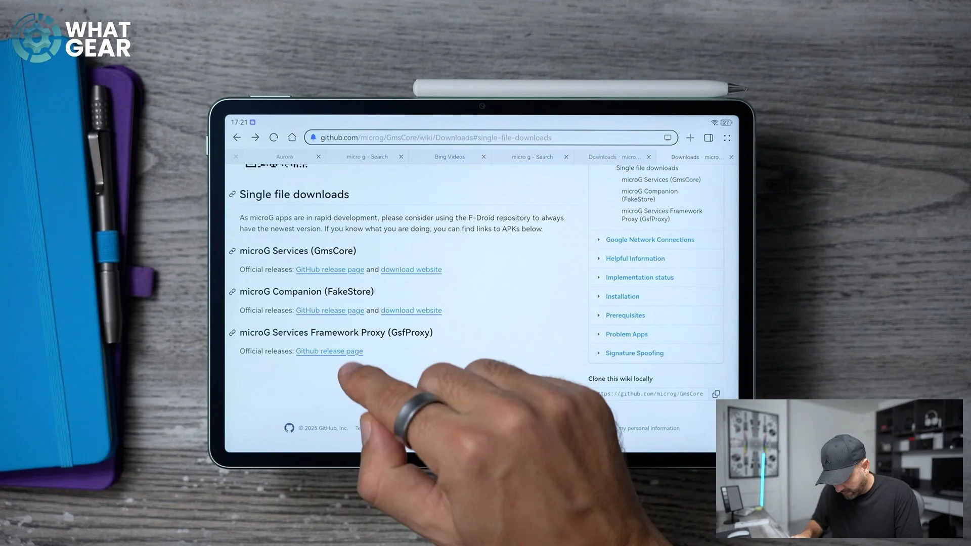 If we go back to the downloads page, right here is where we'll find the actual microG Services Framework Proxy. So if you tap on this, this takes you to the GitHub page where you'll find the gfs-proxy APK. This is for microG Lite. If you tap on that, it downloads. Go to the Downloads section on your device and install the microG Services Framework Proxy.