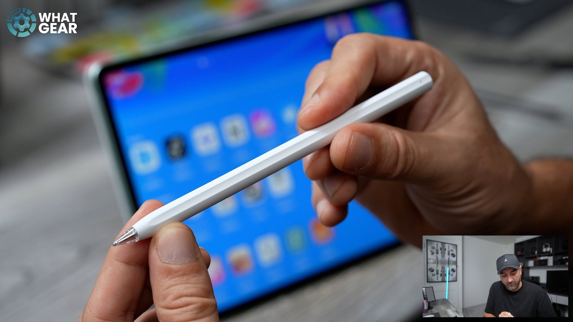 Now let's get a look at the brand new Pencil Pro and see how well it works with this. It's got a nice bit of weight to it. It actually feels like a proper pen as opposed to just a hollow piece of plastic that some styluses feel like. And then there are some additional tips here as well. So we've got the writing tip, we've got the painting tip, and then we have a small-font writing tip. So it's nice you get a bit of variation between them. So the one that is pre-installed on the Pencil Pro, I believe, is the painting tip by default. This solid one right here is the writing tip, and I guess it will change the resistance on the display. And this one with the slightly finer tip to it is the small-font writing tip.