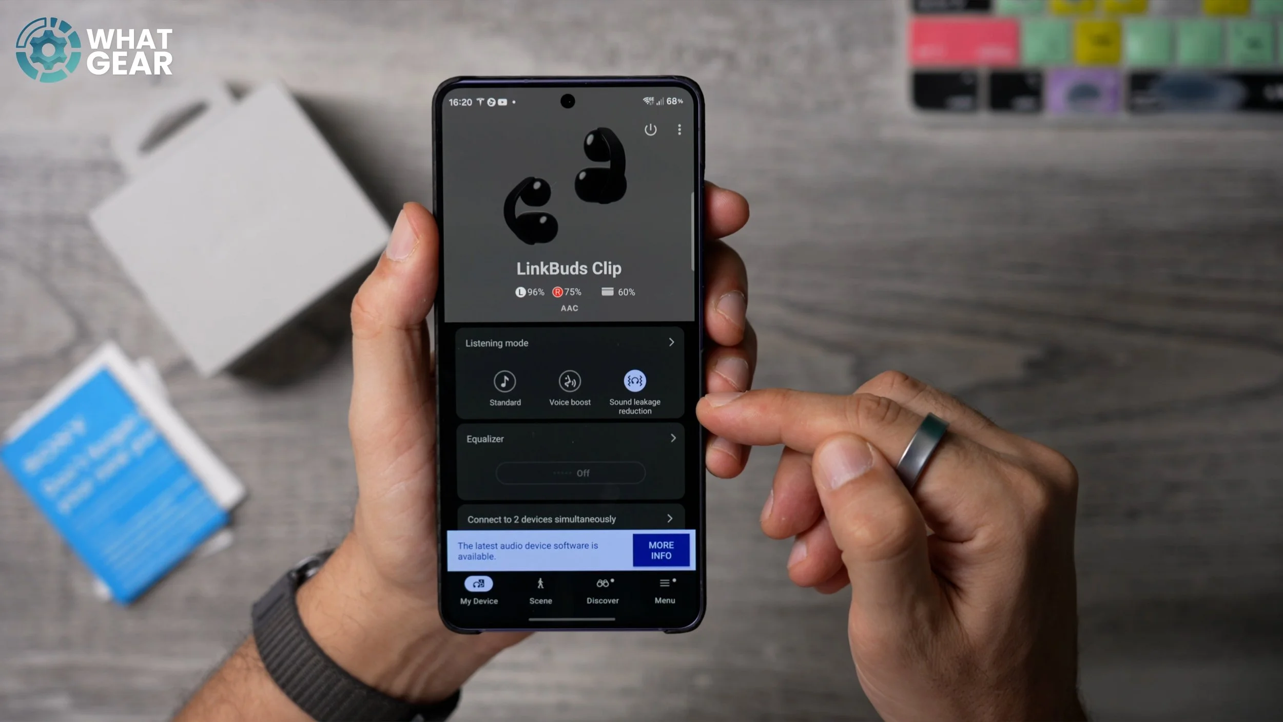 So this is kind of a reverse noise-cancelling feature that reduces the amount of sound that other people can hear when they're sitting next to you. And you'll notice on the app the codec defaults to SBC, and if you scroll down, you can switch the codec to prioritise quality instead of stability. Quality is what you should switch to if you care about audio quality. And I will tell you guys, what I think of the sound quality in a minute. But before I do that, I should do this software update for the earbuds. So one of the exclusives that you'll get with the Sony LinkBuds Clip is Sony’s DSEE — Sony's Digital Sound Enhancement Engine — which can upscale lower-res audio to sound more like high-res audio. So if you listen to the radio or lower-quality audio a lot, you’ll appreciate that feature for sure. And my first impression of how they feel when wearing them is that they’re extremely comfortable.