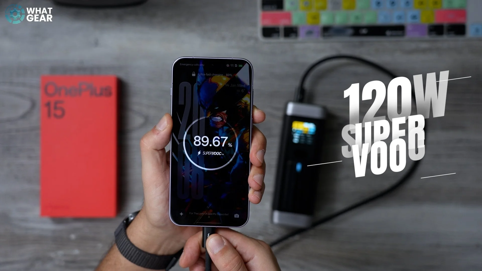 The flagship 15 uses Corning Gorilla Glass Victus 2, which has better drop resistance against concrete and is said to be twice as scratch resistant — one up for the OnePlus 15. Another difference is the larger 7400 mAh silicon-carbon battery in the 15R. The 15 has a similar but slightly smaller 7300 mAh battery, but the 15 does charge faster, supporting speeds up to 120W versus 80W on the 15R.