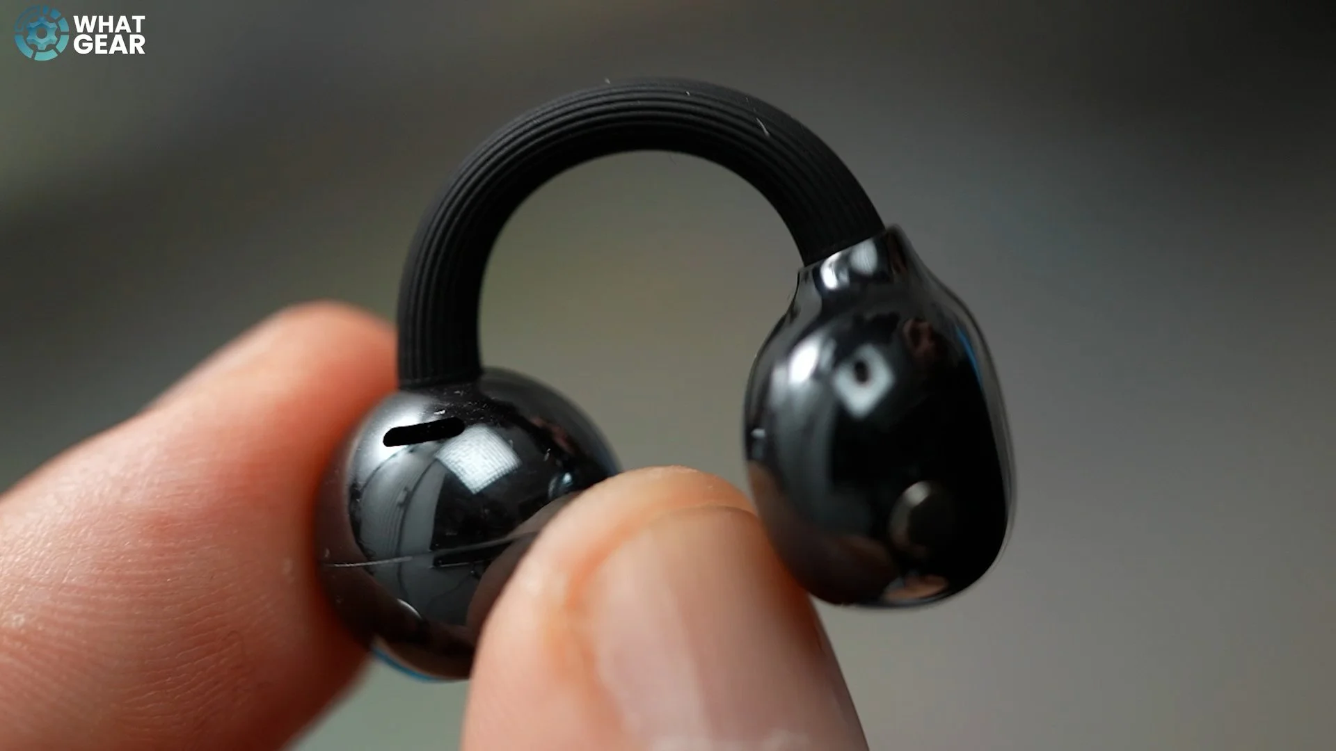 There are three parts to each of the FreeClip 2 earbuds. There’s this part right here, which Huawei calls the Airy SeaBridge. This is a flexible C-shaped connector that has a shape-memory alloy core running through it, designed to keep its shape even after thousands of flexes. This joins the two main parts of the buds, and with this second-generation approach, Huawei says they’ve managed to make them 25% softer than before.