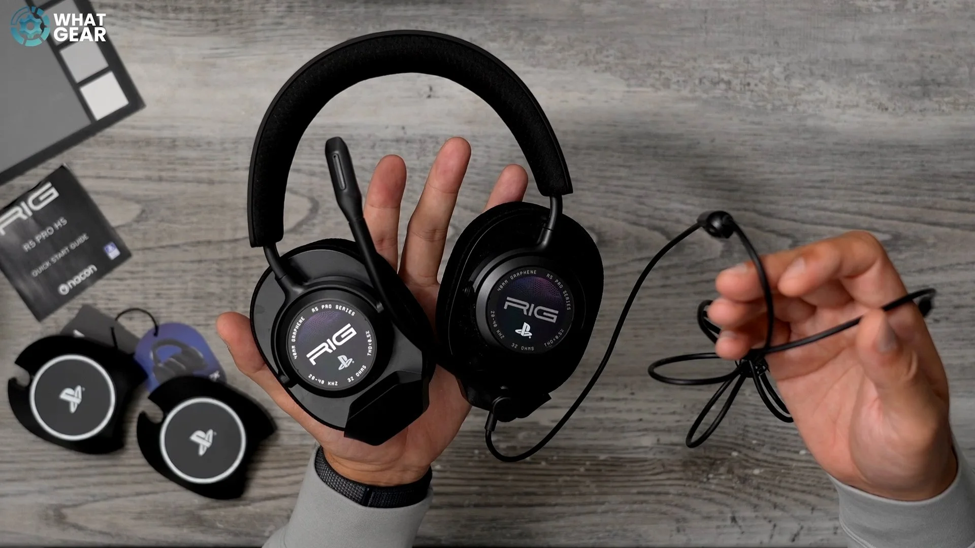 The RIG R5 Pro HS uses graphene drivers. This is a type of driver that’s usually reserved for audiophile-type headphones. Essentially, the graphene layer reinforces the diaphragm on these drivers, making them ultra-lightweight and rigid, and this approach reduces distortion massively. According to RIG, the total harmonic distortion is less than 0.5%, and you just know RIG are very proud of this because they’ve actually printed out all of the tech specs around the back of the earcup here to highlight the qualities of these particular drivers. What this will mean for you when you’re gaming is that the sound will be very precise, very accurate. You’ll be able to tell where things are coming from, and when you hear booms or high pitches, it’s not going to distort and crackle and put you off your game.